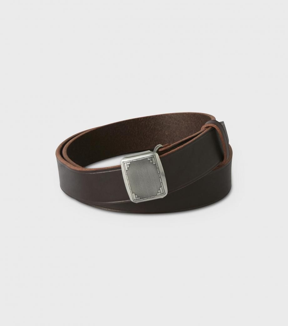 バックルにはさみ込んで留める、ホールレスタイプ。